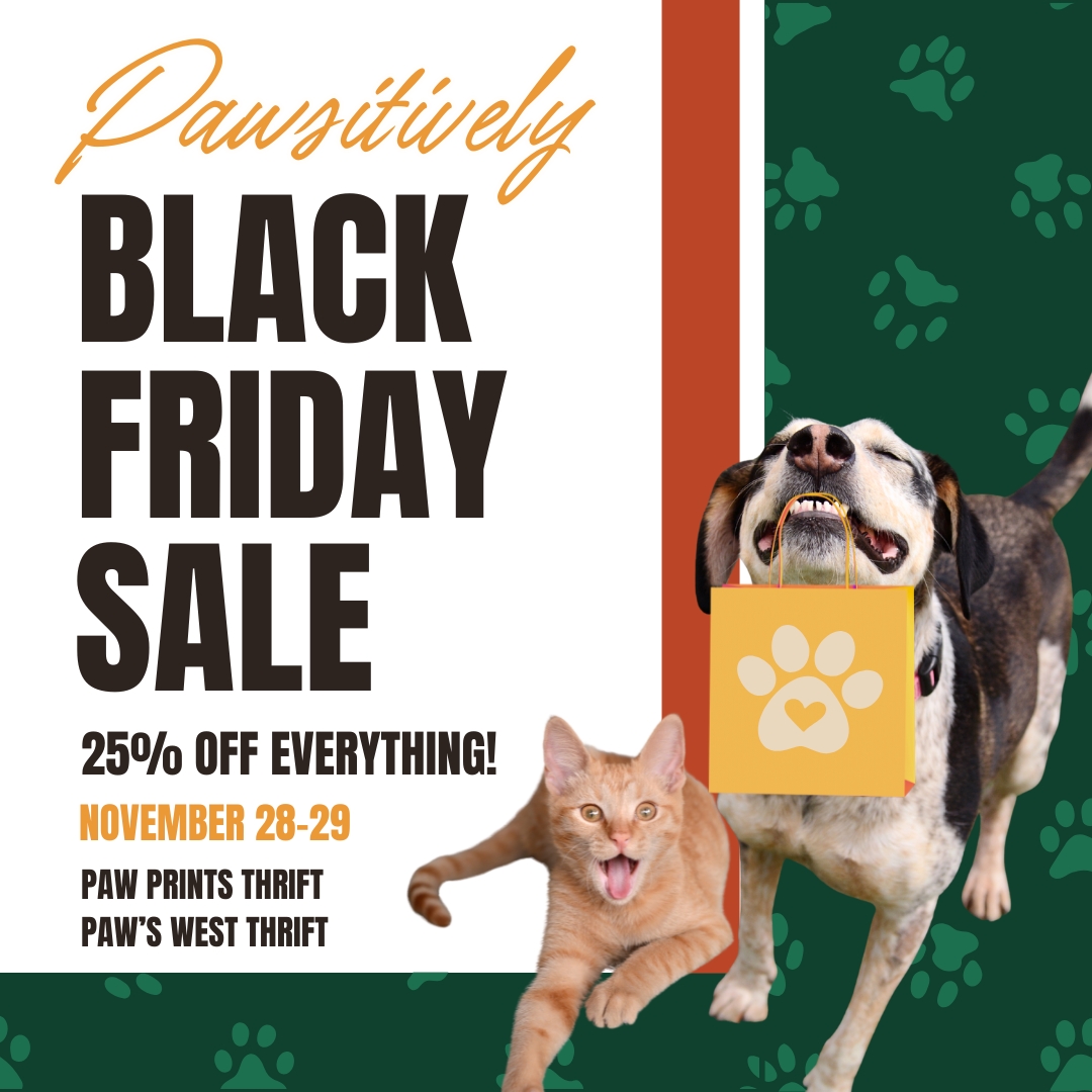 | November 28-29 | Pawsitively Black Friday Sale | Paw Prints & Paw’s West Thrift Shops |