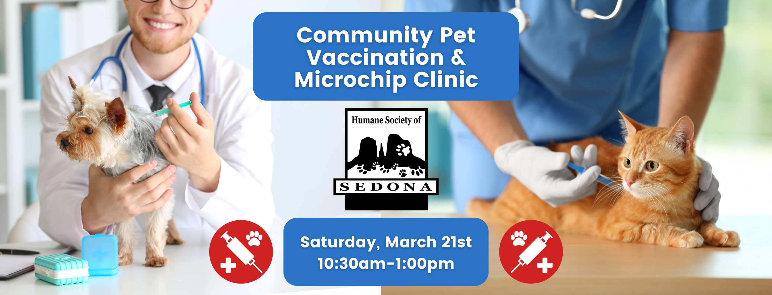 We are happy to announce that we will be providing low-cost vaccinations and microchipping to pets in our community on Saturday, March 21st!
