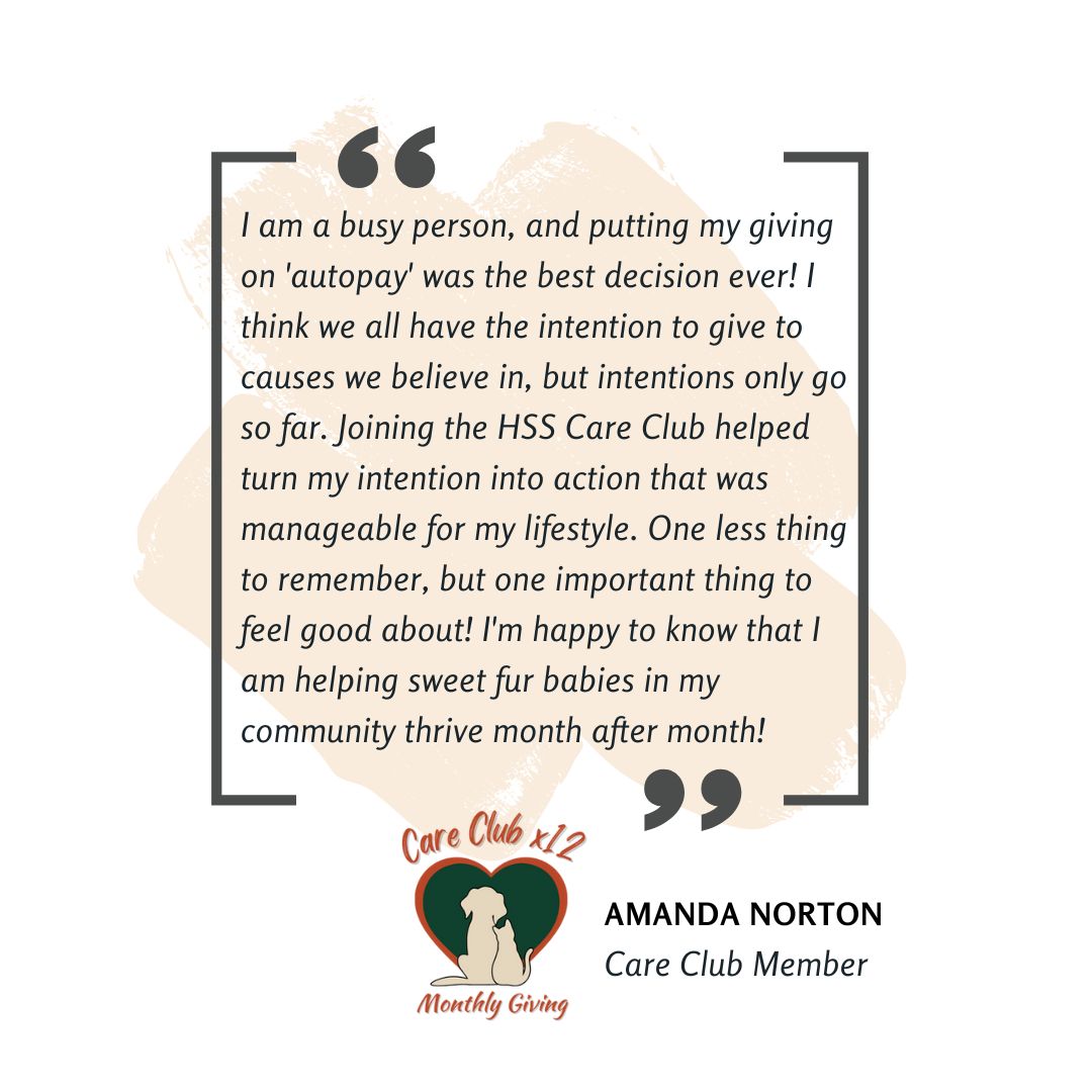 We invite you to join the HSS Care Club x12…where your support is felt and makes a difference for the animals every month!