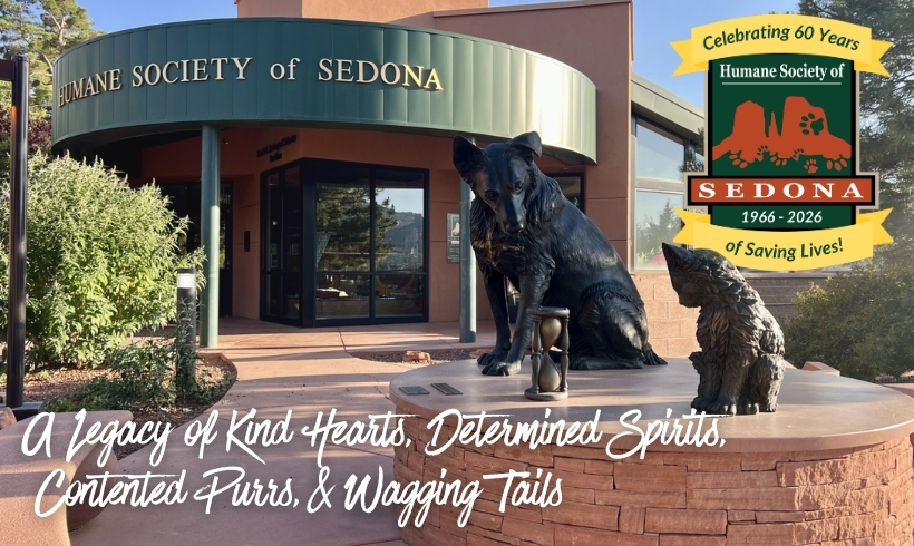 Amidst all the change, growth, and remarkable people and animals that have forged the Humane Society of Sedona’s legacy, those three founding principles remain constant—to be a sanctuary for scared, abandoned, lost, and hurting animals, restore lost pets back to their owners, and find loving new homes and adventures for the shelter animals.